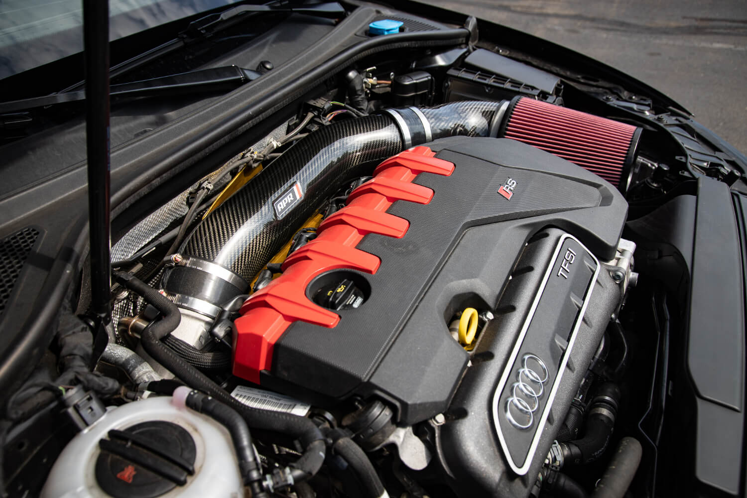 Suneil has brought his Mythos Black RS3 to us for a slew of things over the years, and we’ve recently started working more in the engine bay. Not too long ago, he decided to make the jump to APR’s Intake and Inlet System.