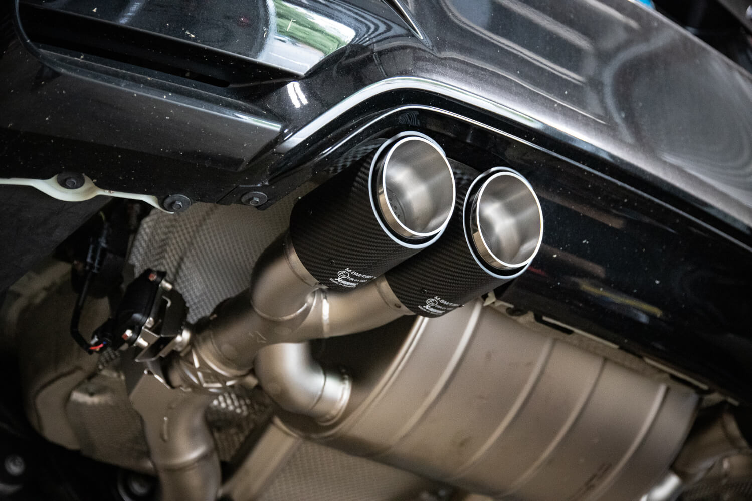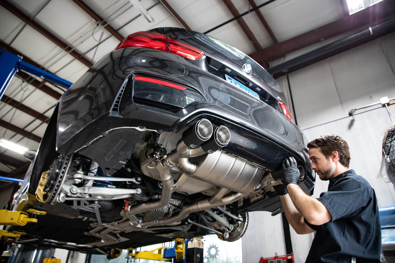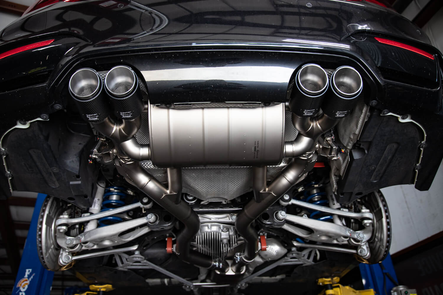 We started with a full titanium Akrapovic turbo back system. The ultimate tasteful exhaust system. Later, we bundled together a Dinan kit to really pull the car together. Dinan Anti Sway Bars, springs, Dinantronics, carbon fiber intake, coilovers, etc. There’s no brand like Dinan to support the BMW aftermarket, (hence why we partnered with them!) and with a full suite of Dinan parts, this M is sure to perform.