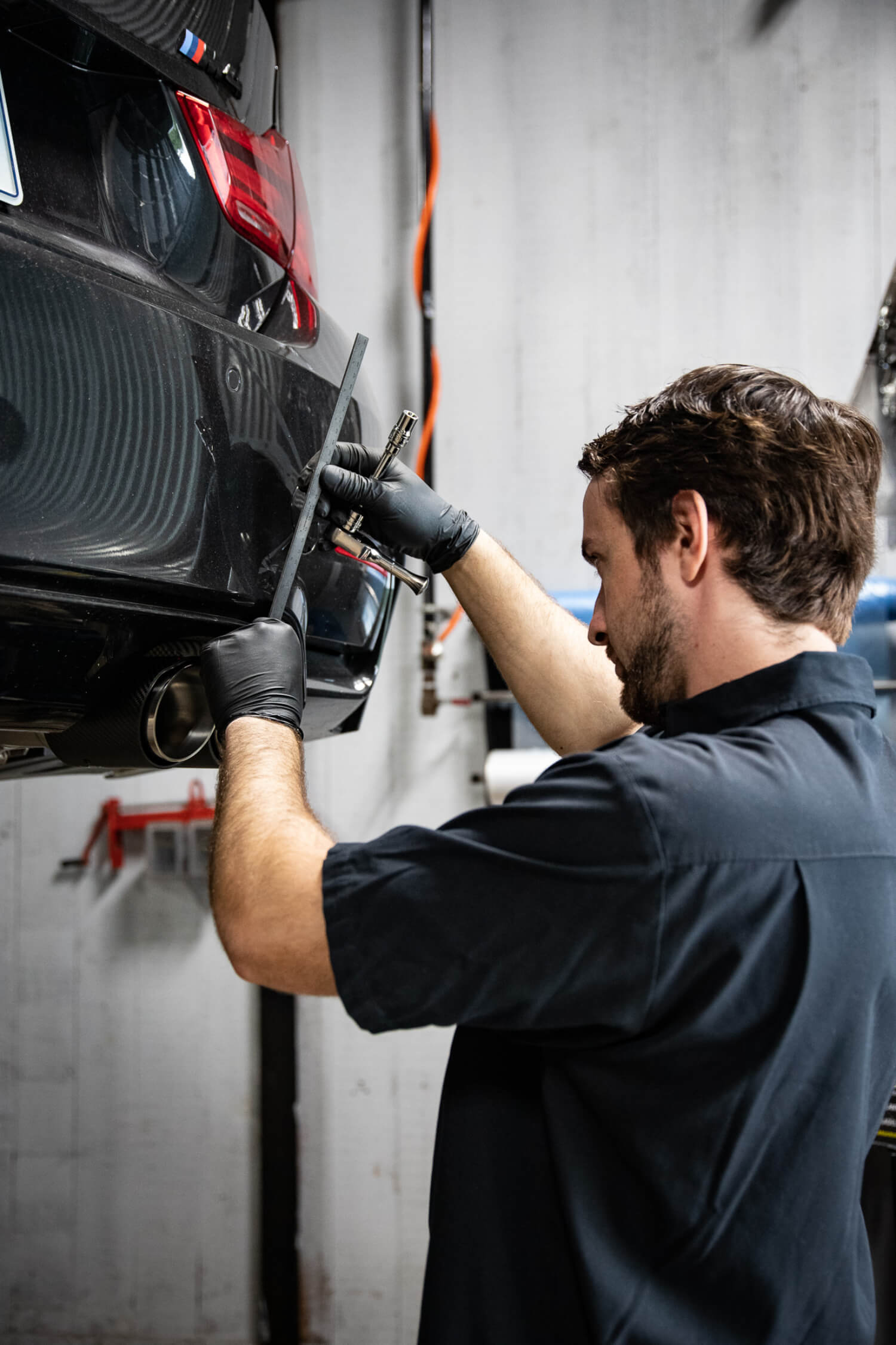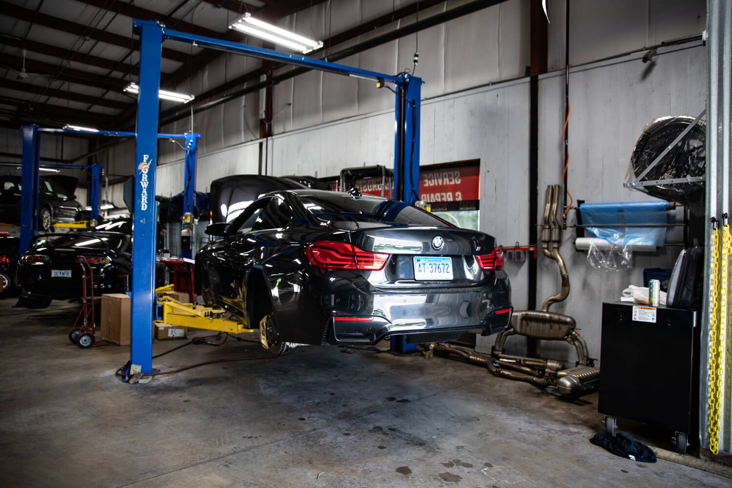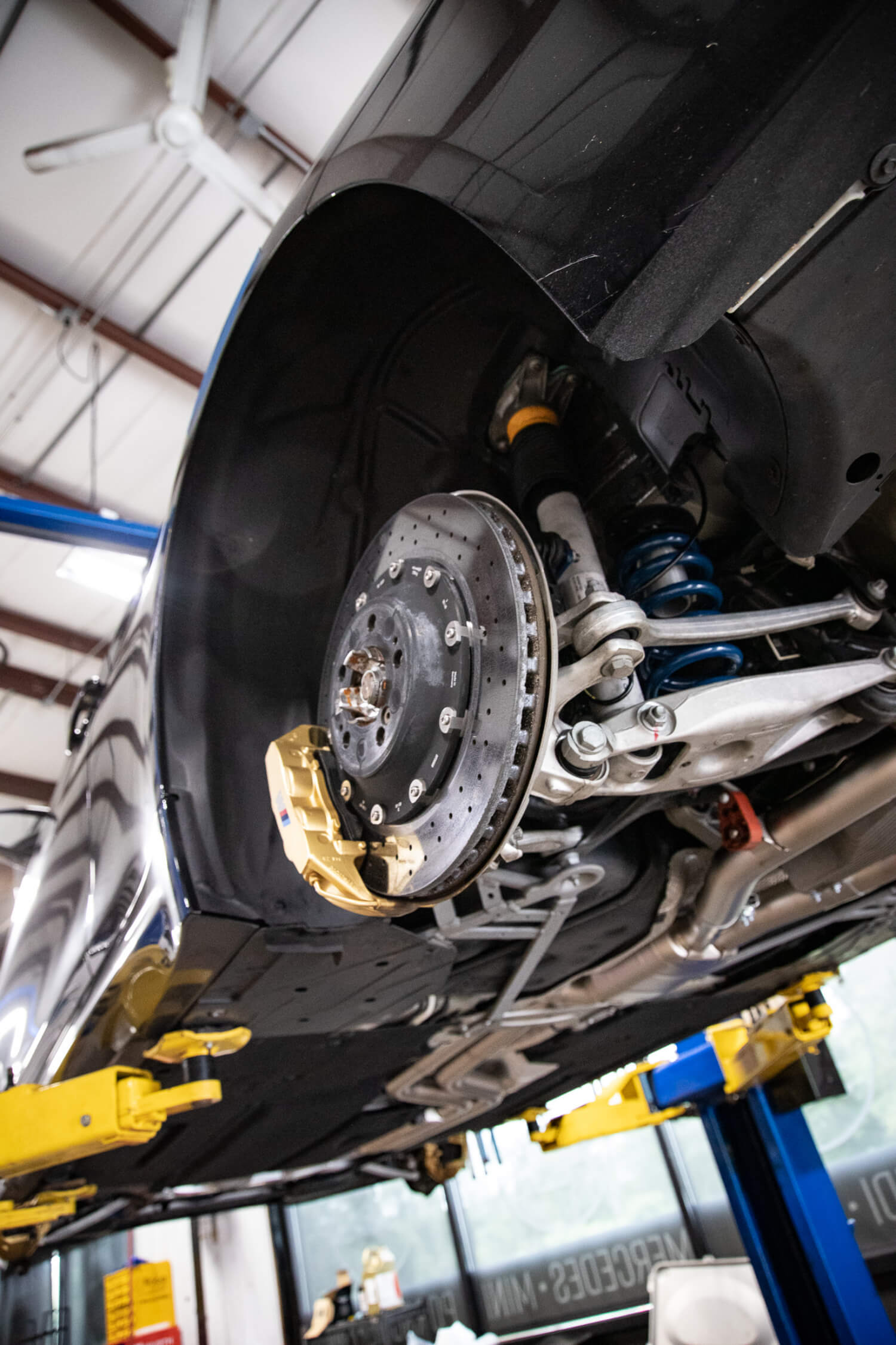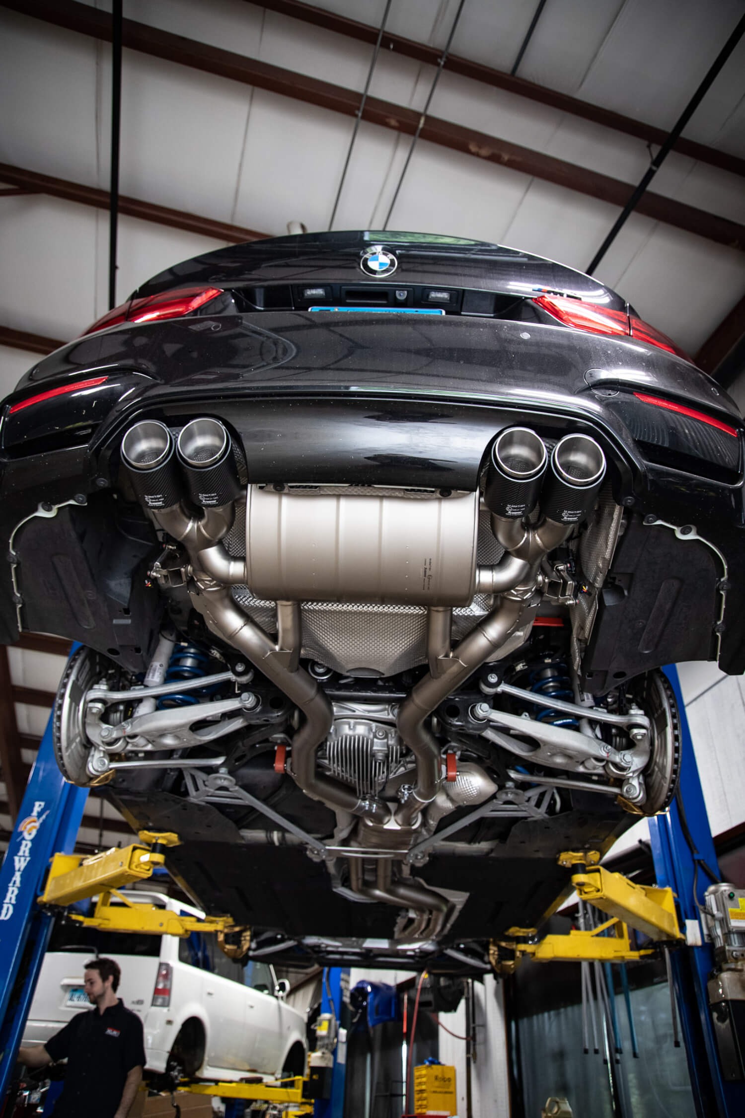 We started with a full titanium Akrapovic turbo back system. The ultimate tasteful exhaust system. Later, we bundled together a Dinan kit to really pull the car together. Dinan Anti Sway Bars, springs, Dinantronics, carbon fiber intake, coilovers, etc. There’s no brand like Dinan to support the BMW aftermarket, (hence why we partnered with them!) and with a full suite of Dinan parts, this M is sure to perform.