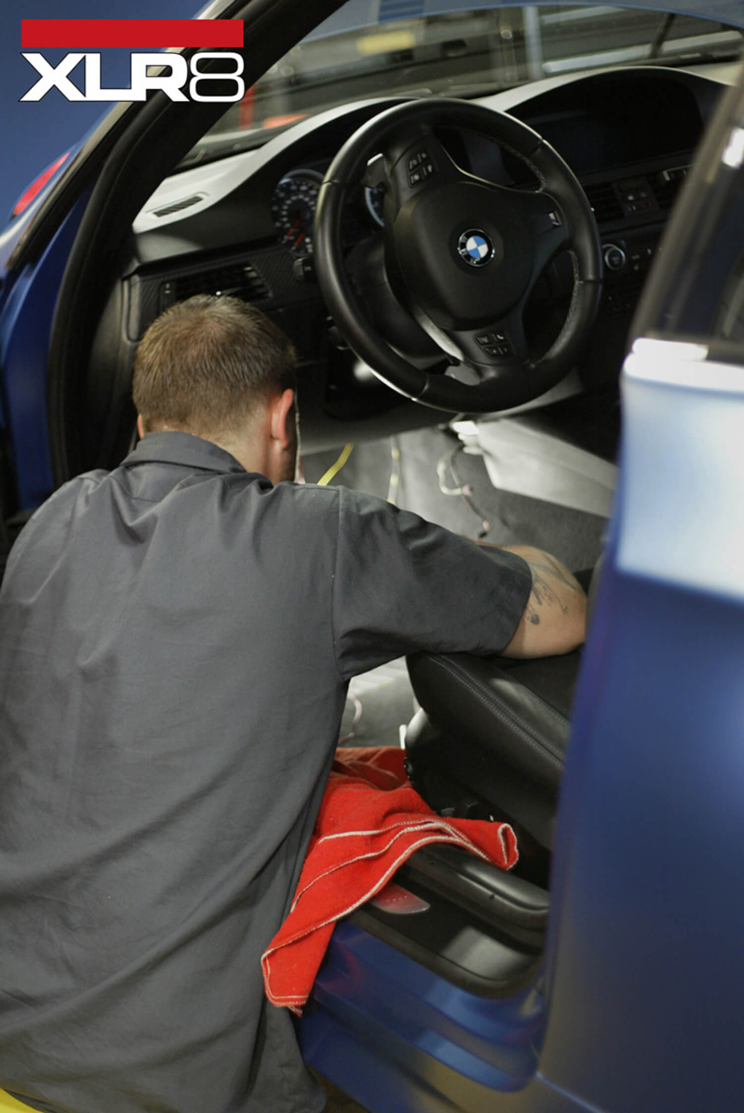 Follow along as the crew at Excelerate Performance installs an Innotech Performance Exhaust system on this Frozen Blue Limited Edition E92 BMW M3. This stainless steel valvetronic exhaust is controlled electronically operated by a hand held remote using wireless technology. This wireless technology starts in the centralized control unit hardwired and stored inside the car. Our mechanics are so meticulous you couldn’t begin to look to find where this unit is hidden. This exhaust system is the definition of Mild – T0- Wild. With the electronic valve control you can tune the valves to open based on throttle position, this way you can cruise quietly but wake up the town in which you are driving through when you stab the accelerator.