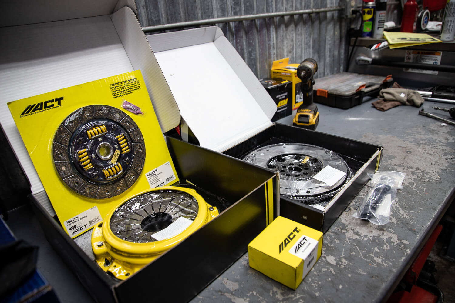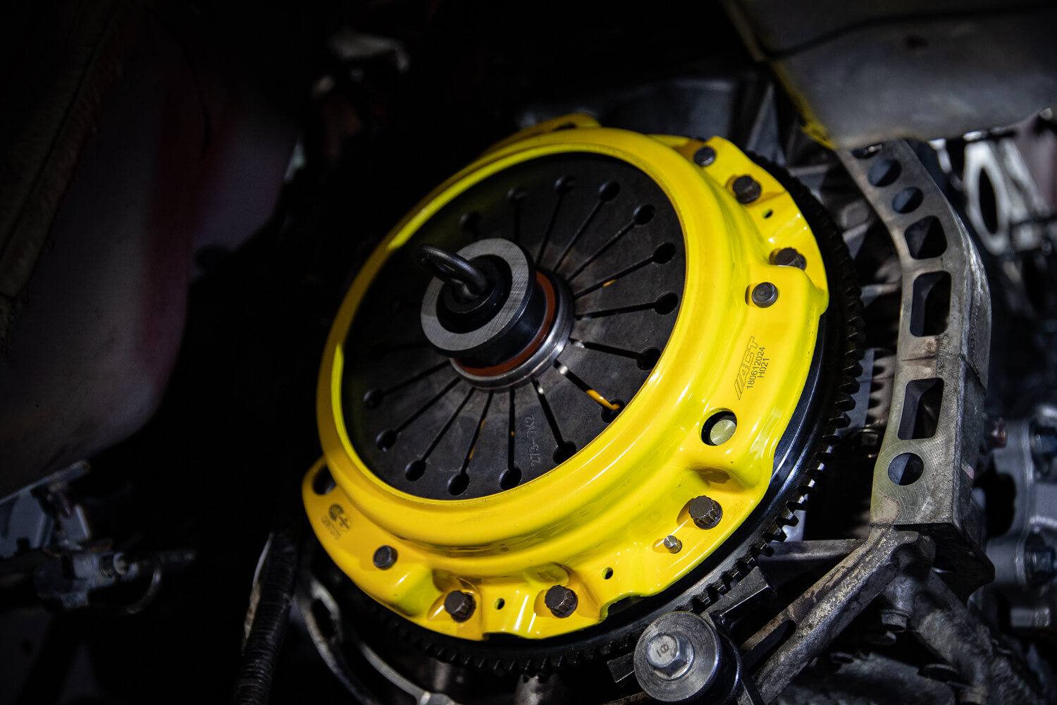 Since the Kraftwerks kit offers such a large gain over stock, an upgraded clutch is necessary to make sure the transmission can handle all the extra power! We solved this by getting rid of his old factory clutch and replacing it with an ACT HD street clutch kit and ACT lightweight flywheel. This kit will take up to 370 ft. lbs, giving Alan some room to grow without compromising drive-ability