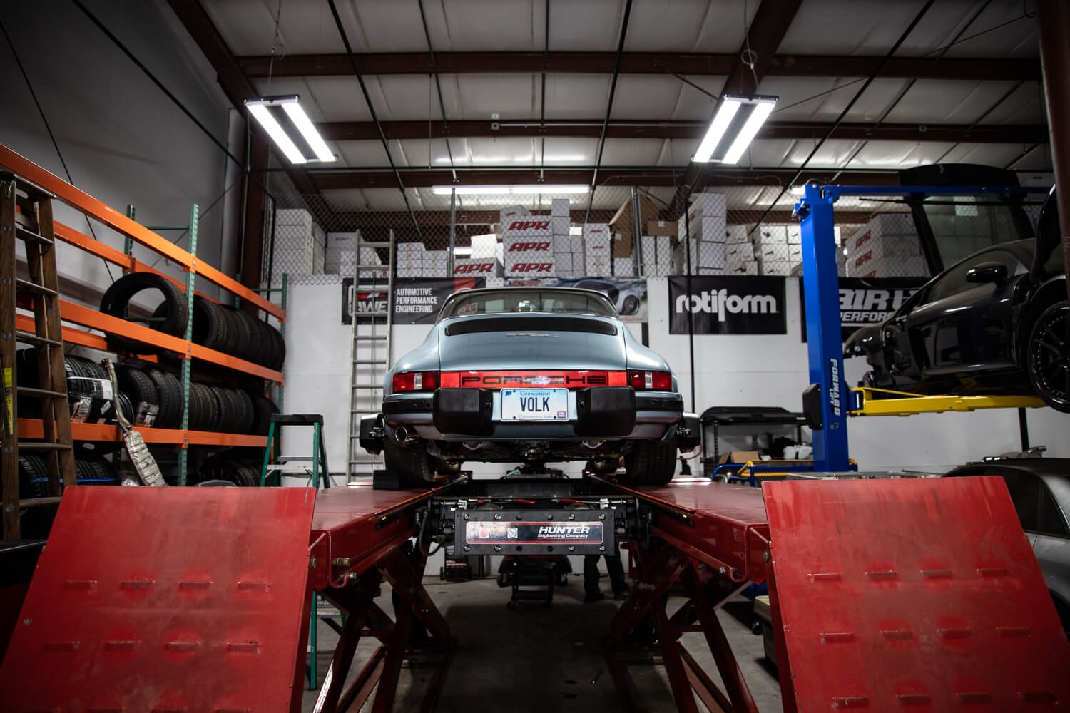 Next, we suited up the 911 for our Hunter Hawkeye Alignment Rack and went to town. With the help of some Porsche specialty tools, Dan was able to dial in the alignment and get the car driving straight.