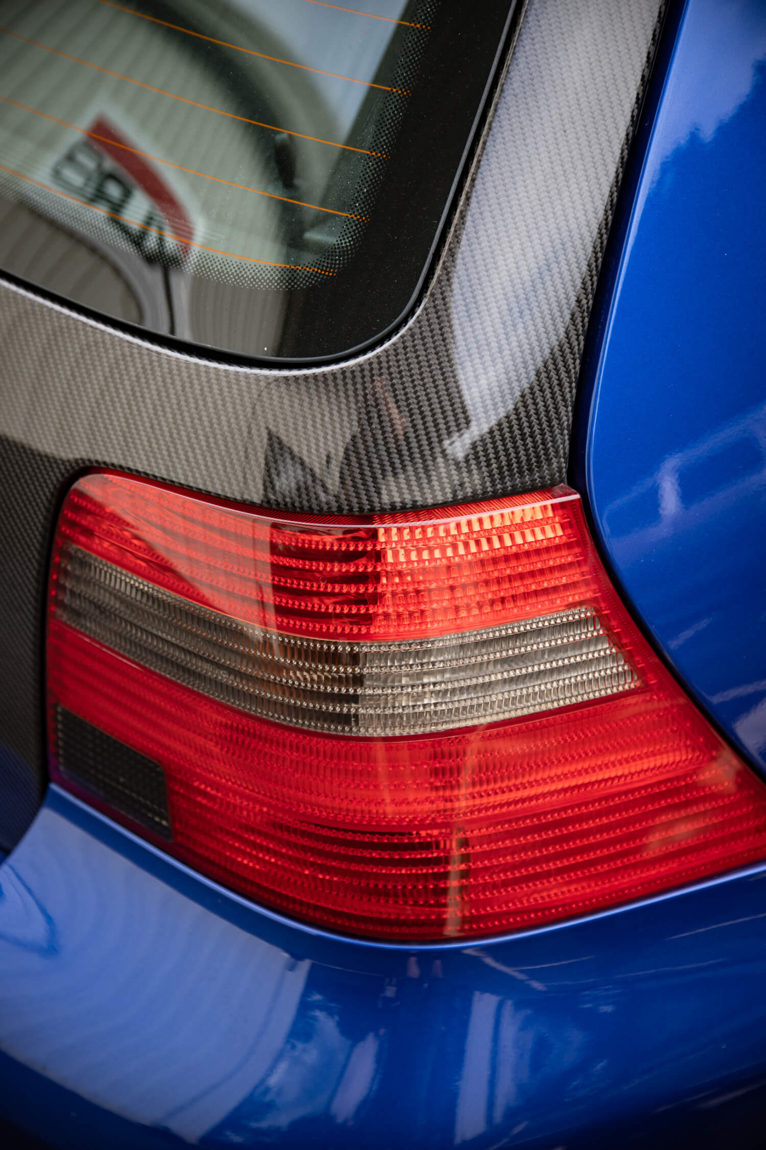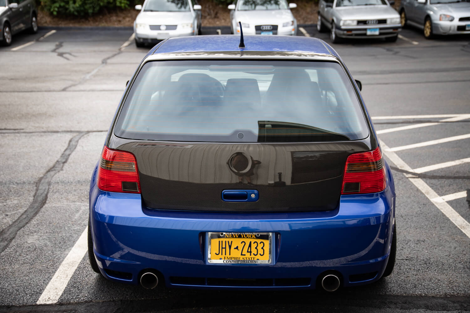 We started with shaving some weight off the chassis with Seibon’s Carbon Fiber Hood and Hatch, along with a rear seat delete. Seibon’s hood and latch lined up great, but some cutting and filing were required to add all of the OEM pieces back. With that, we also removed the rear wiper with APR’s wiper delete. This made the new hatch look much cleaner as well as keeping weight to a minimum. HID headlights were added to keep everything bright at night, and a shift kit with stainless clutch line and a bleeder block were installed to keep shifts tight.